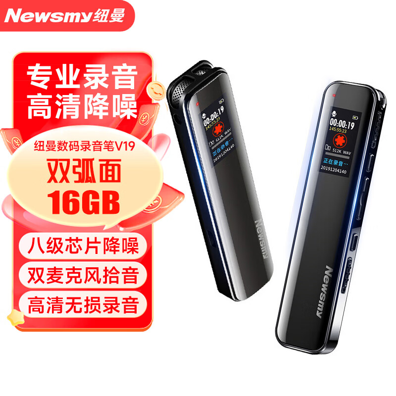 纽曼录音笔 V19 16G 一键录音 可音频线转录 高清降噪录音器 培训交流会议录音速记 锖色价格:189.00元!