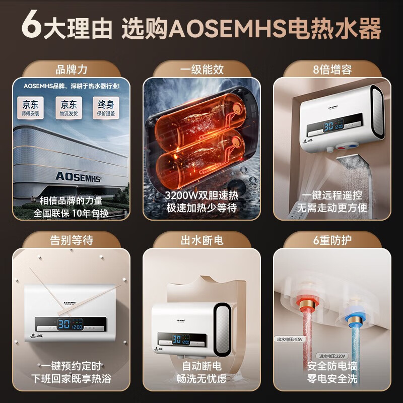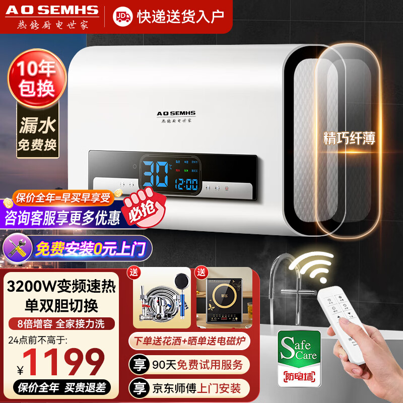 AOSEMHS热水器电热水器电家用洗澡储水式80升扁桶一级能效速热3200W-C80-32WB6价格:1199.00元!