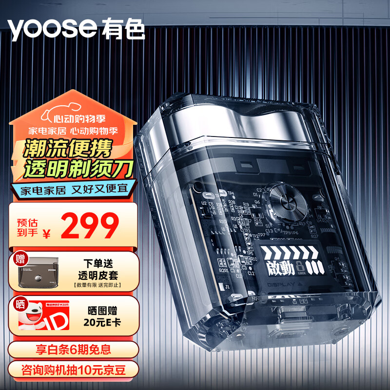 有色(yoose)电动剃须刀 潮流便携 男士刮胡刀 透明机身 生日情人节520礼物送男朋友 胡须刀礼盒 ICE 透明灰价格:399.00元!