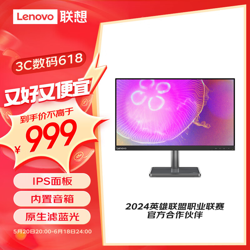 联想(Lenovo)23.8英寸2K IPS技术 原生滤蓝光 莱茵护眼认证 内置音响 可壁挂 电脑办公液晶显示器L24q-35价格:999.00元!