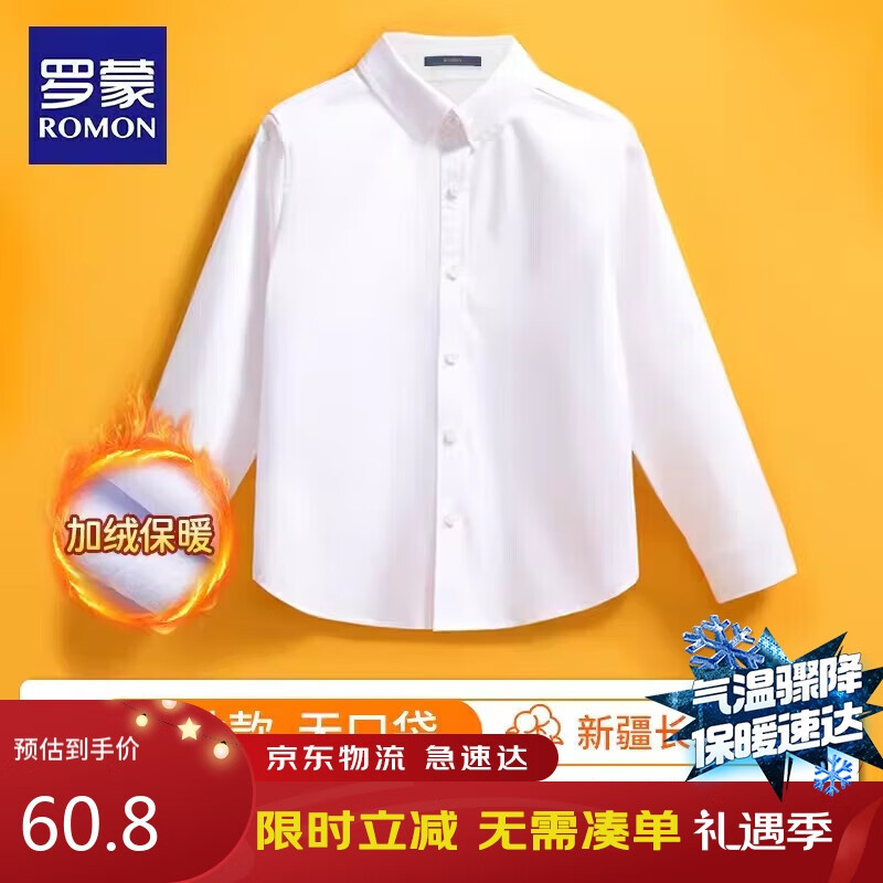 罗蒙儿童加绒白衬衫表演出服校园款 白色加绒衬衫 130价格:69.90元!