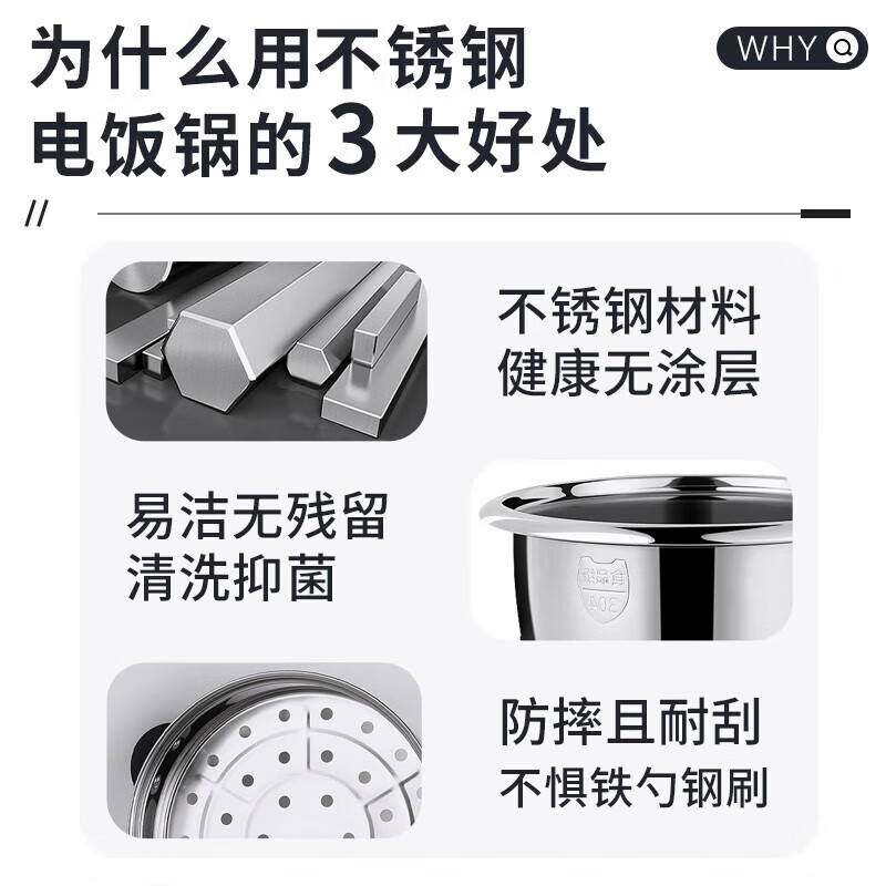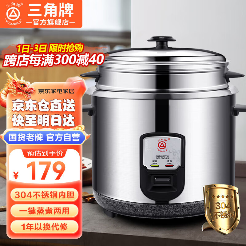 三角牌(Triangle) 电饭煲老式电饭锅不锈钢家用煮饭锅米饭锅带蒸笼家庭用 升级款 304不锈钢丨 4L价格:179.00元!