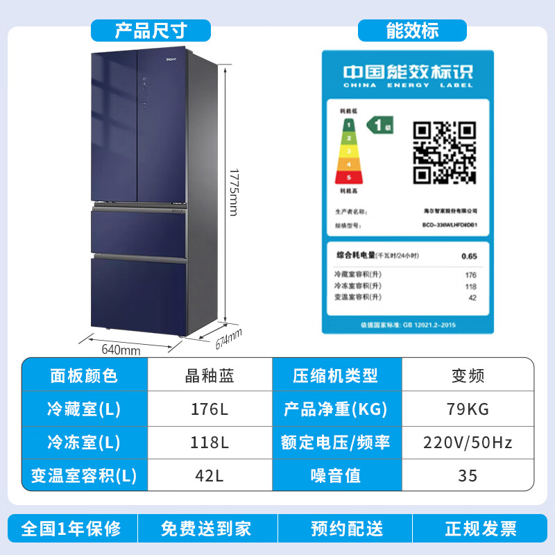 这款海尔BCD-336WLHFD8DB1的质量参数,还有这款的开始销售的时间和用户的评价等等,如果你对此款感兴趣的话,不妨一起来瞧一瞧!客服态度很好,及时解答了我的问题,有种被关心和重视的感觉。