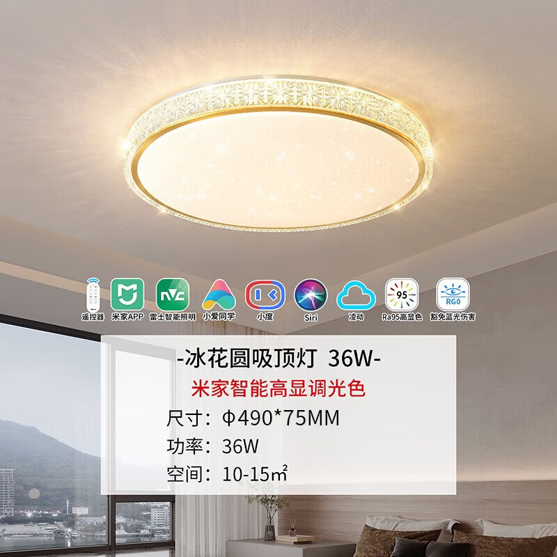 雷士(NVC)北欧led智能高显指吸顶灯餐厅灯书房房间卧室圆灯WHXD36W/F-16价格:755.00元!