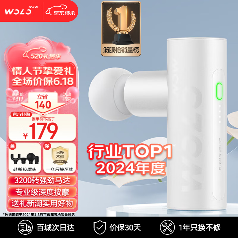 沃乐WOLO筋膜枪按摩器迷你mini专业级健身肌肉放松仪肩颈腰椎经腿足部 情人节礼物女送男友 象牙白价格:299.00元!