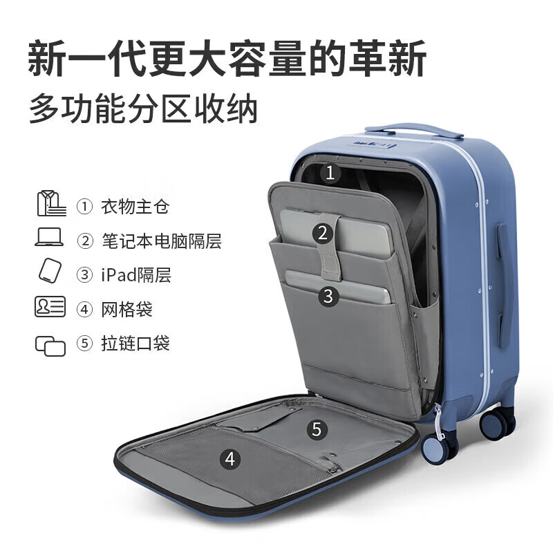 米熙米熙前开盖铝框拉杆箱李箱女大容量旅行箱密码箱男20英寸宝石蓝70价格:669.00元!