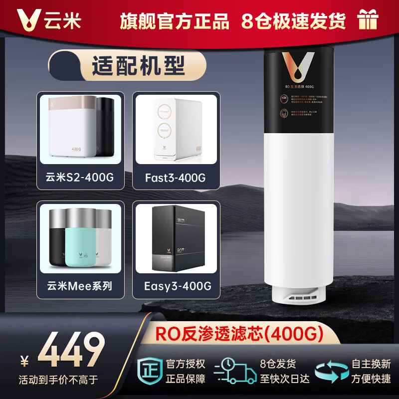 云米(VIOMI)云米净水器滤芯Super1000G/1200G /Super Pro、Vision Pro 1200G 澎湃、Easy3系列通用滤芯 2号RO膜400G(Easy3专用)价格:440.02元!