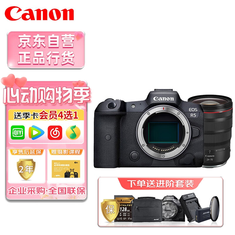 佳能(Canon)EOS R5 +RF 24-70mm F2.8 USM镜头 扫街旅拍套装价格:39999.00元!
