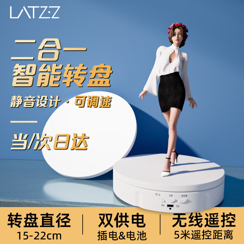 徕兹(LATZZ)摄影拍摄电动转盘旋转展示台小珠宝直播产品展示静物拍摄台自动旋转可调速二合一遥控充电款价格:168.00元!