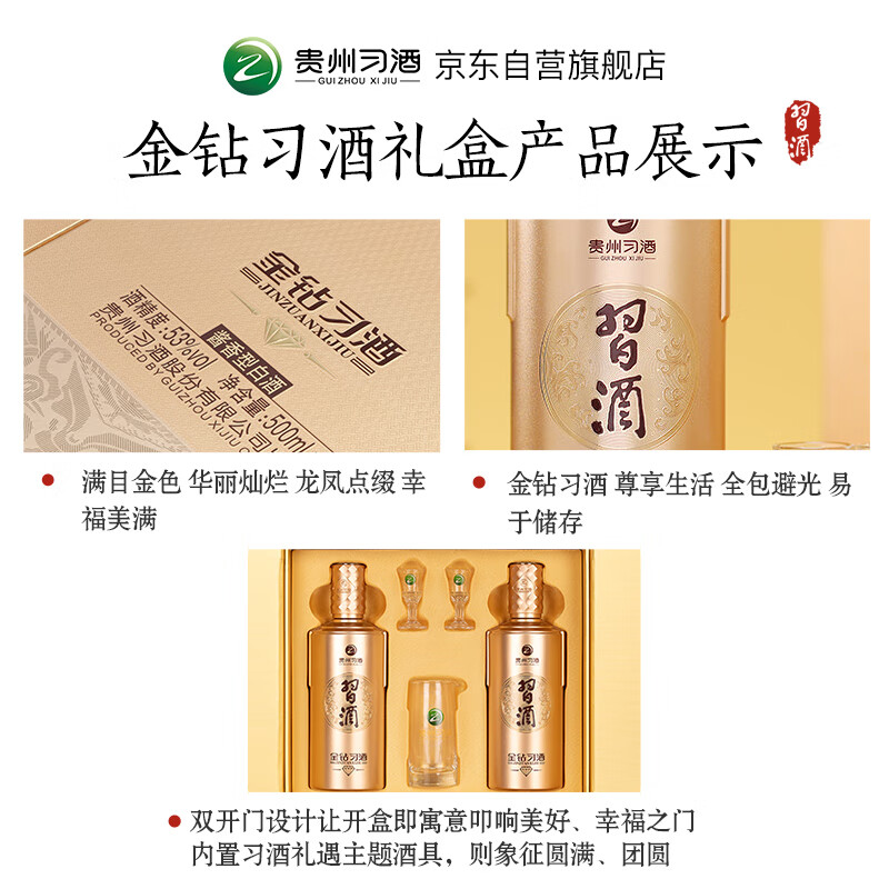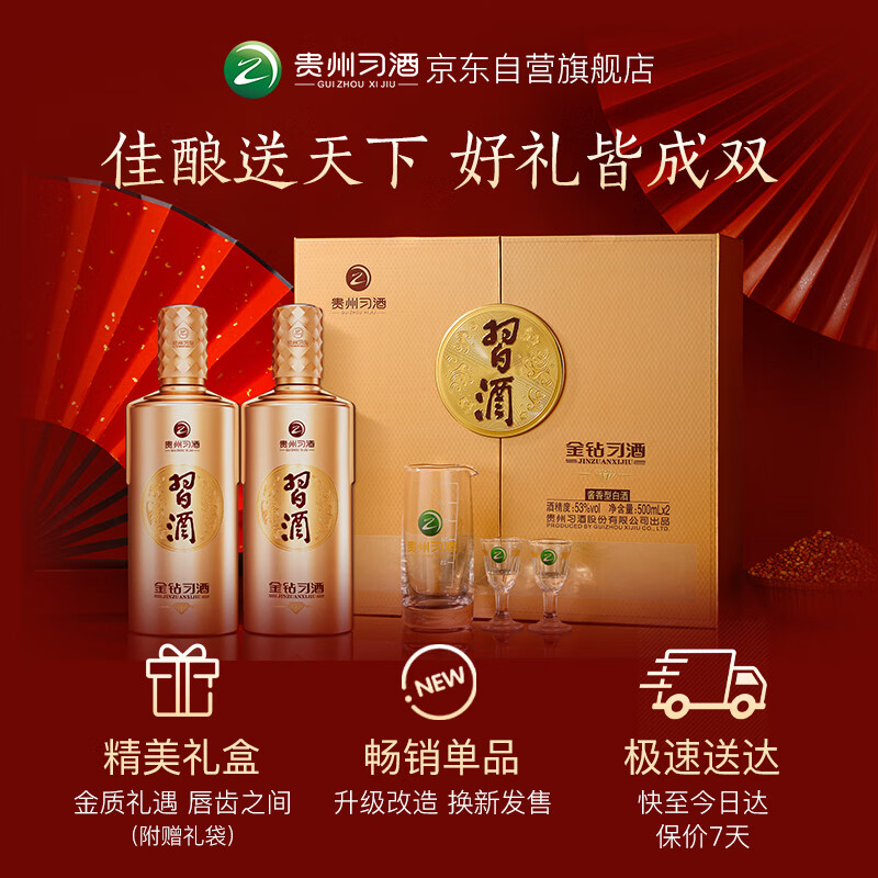 习酒金钻习酒 酱香型白酒 53度 500ml*2瓶 礼盒装(含酒具)贵州白酒价格:829.00元!