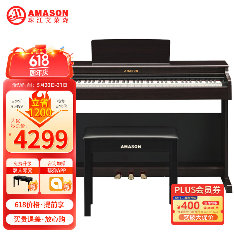 艾茉森(Amason)珠江钢琴 考级电钢琴88键重锤数码电子钢琴专业成人儿童DP-F棕色价格:5149.00元!