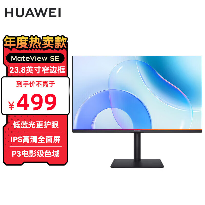 华为显示器 MateView SE 23.8英寸屏窄边框75Hz高清 低蓝光无频闪 学习家用办公电脑显示屏价格:499.00元!