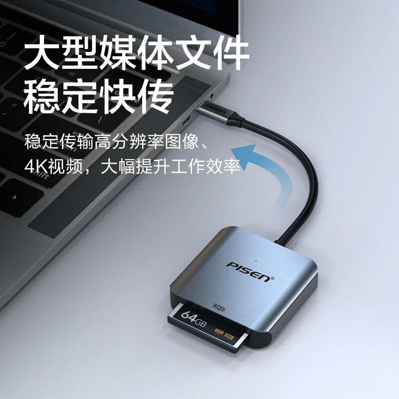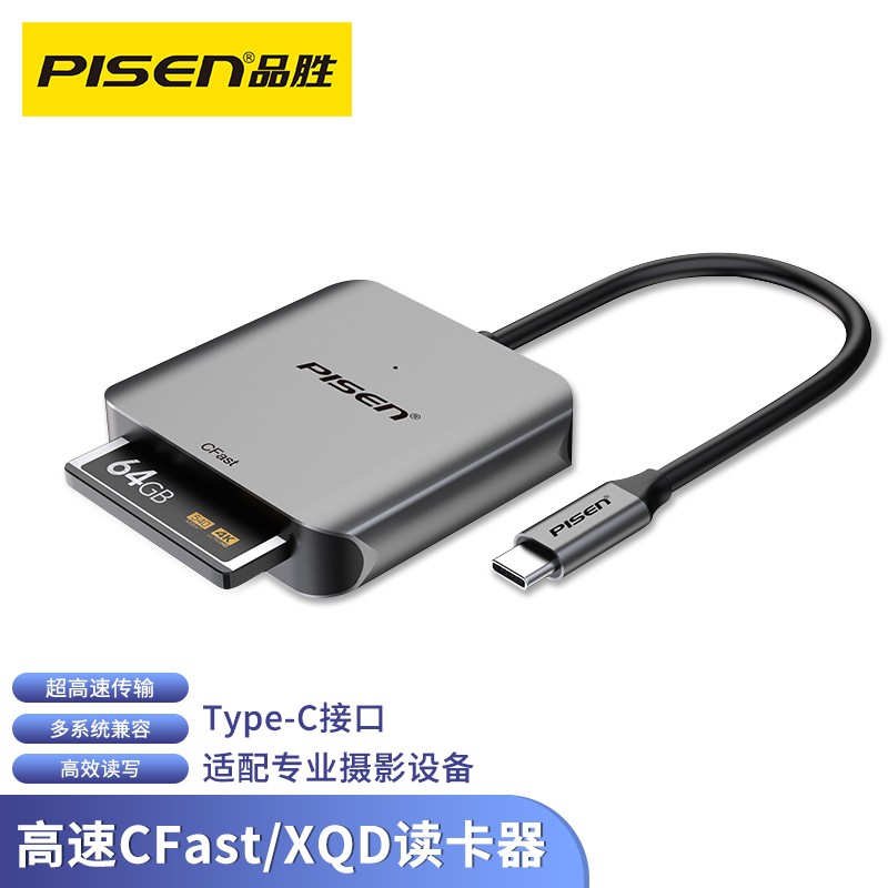 品胜(PISEN)Type-c高速XQD读卡器支持otg手机苹果15专业摄影设备尼康D4/D5/D500索尼FX9/FS7/FS7II价格:145.00元!