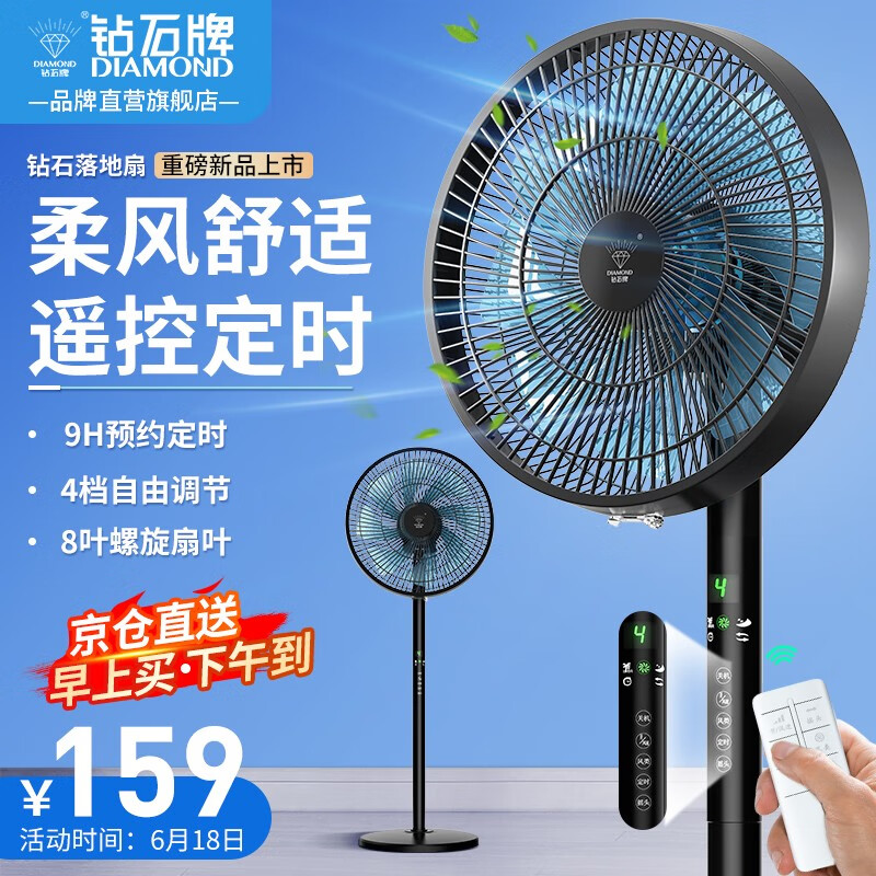 钻石牌(DIAMOND)电风扇落地扇家用办公室立式风扇客厅宿舍轻音节能电扇大风量摇头风扇 FS-35A 八叶遥控款价格:189.00元!