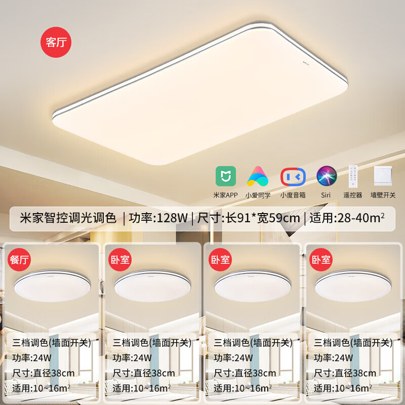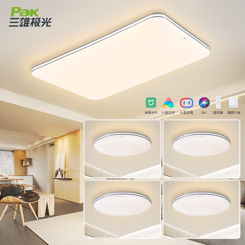 三雄极光 led吸顶灯智能超薄灯具 AI语音智控客厅+餐厅+卧室x3价格:821.00元!
