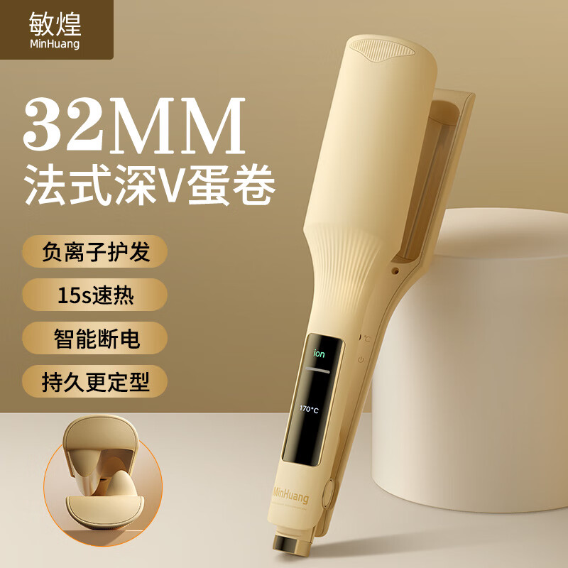 敏煌(MinHuang)32MM深V蛋卷棒 负离子卷发棒 水波纹法式蛋蛋卷 蛋卷卷发棒蛋卷 VI 星沙黄价格:129.00元!