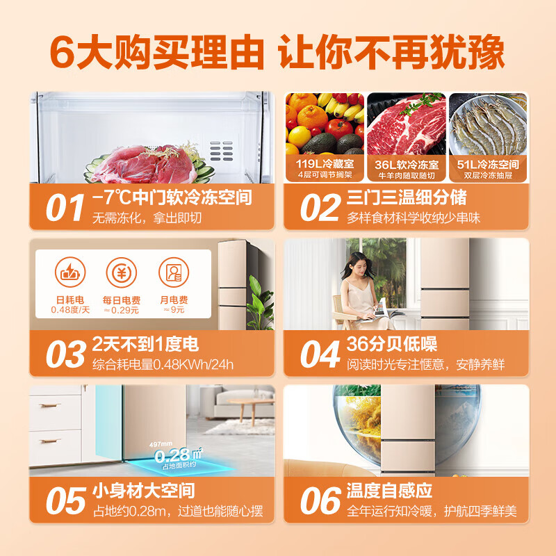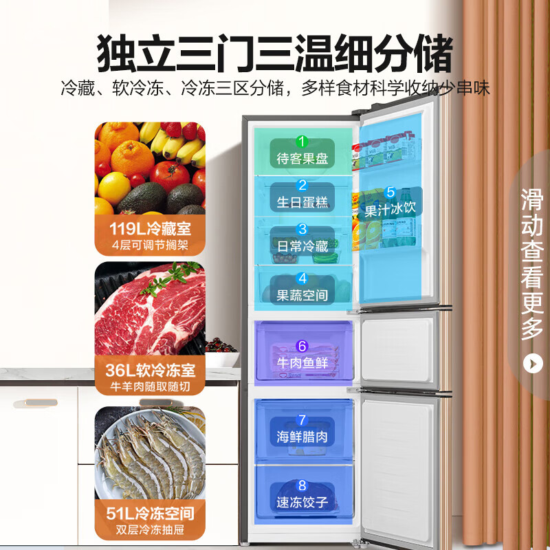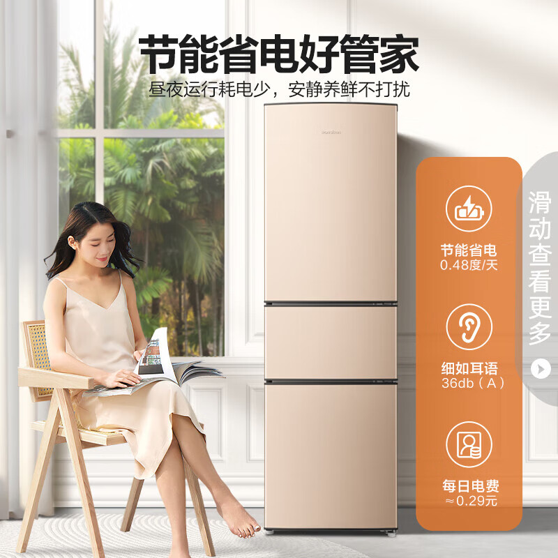容声(Ronshen)206升冰箱三门小冰箱中门软冷冻三温区保鲜 节能低噪 小巧不占空间 家用租房 节省空间价格:999.00元!