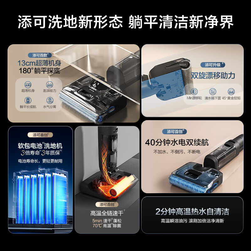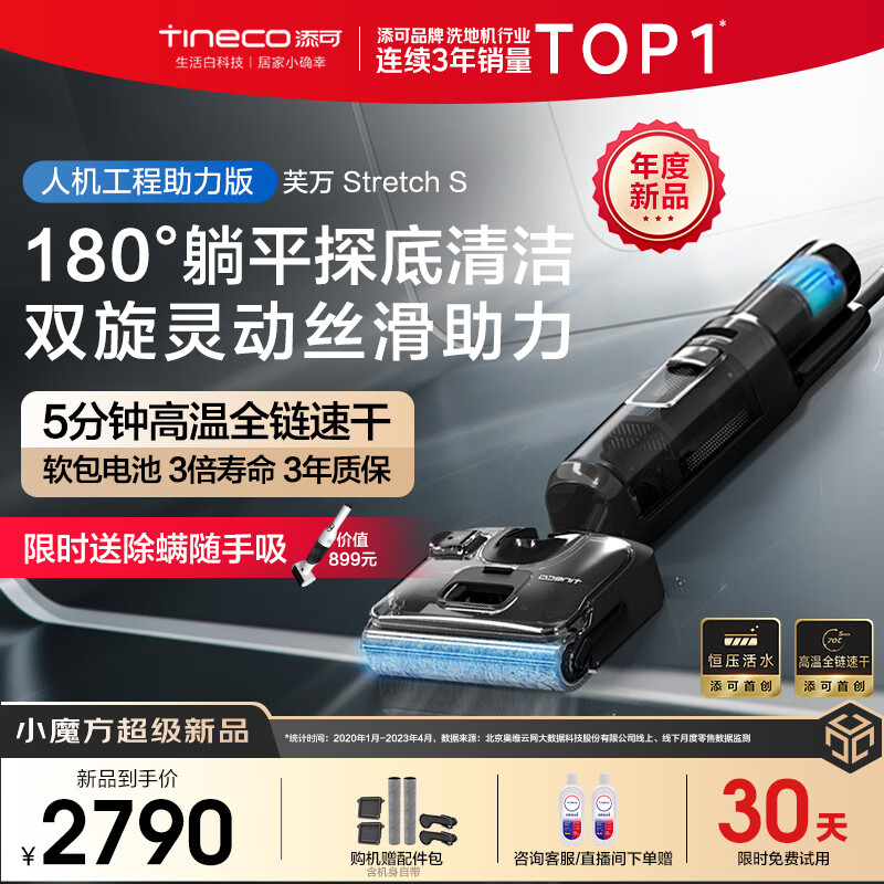 添可(TINECO)人机工程助力版芙万Stretch S 无线智能洗地机 180°躺平高温全链速干吸拖一体手持吸尘洗地机价格:2790.00元!