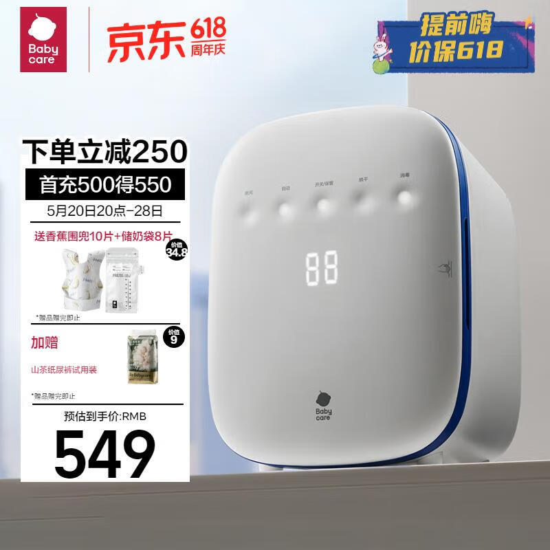 babycare婴儿奶瓶消毒锅带烘干一体紫外线多功能消毒器宝宝专用辛德白价格:799.00元!