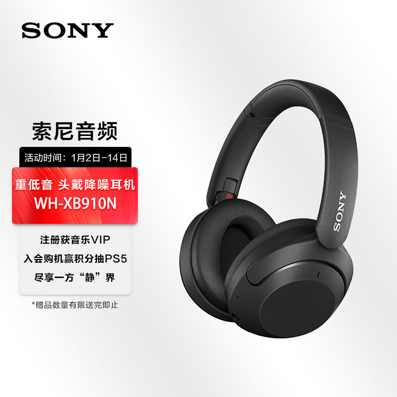 索尼(SONY)WH-XB910N 降噪耳机 无线重低音 头戴式 50小时长久续航 蓝牙5.2 黑色价格:999.00元!