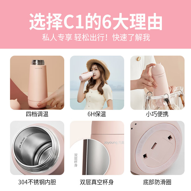 九阳(Joyoung)烧水壶热水壶 便捷式隔热保温电热水壶 四档调温电热水杯 K03-C1(粉)价格:98.10元!