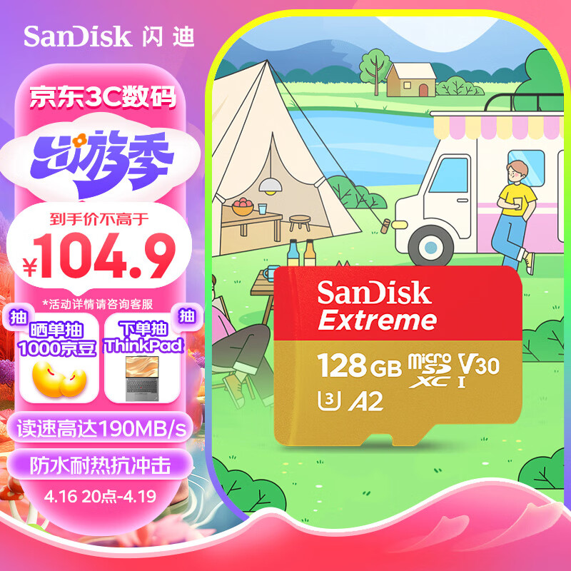 闪迪(SanDisk)128GB TF(MicroSD)内存卡 U3 V30 4K A2 兼容运动相机和无人机存储卡 读速高达190MB/s价格:104.90元!