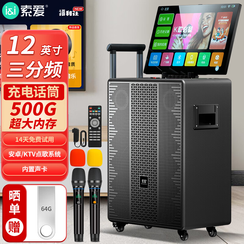索爱(soaiy)K126 家庭ktv音箱全套设备音响功放一体机套装带显示屏户外k歌卡拉ok点歌家用唱歌移动音箱500G价格:2799.00元!