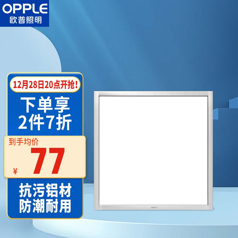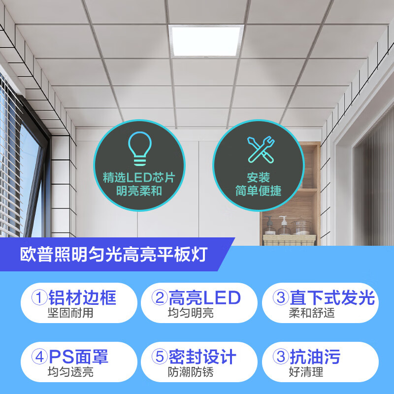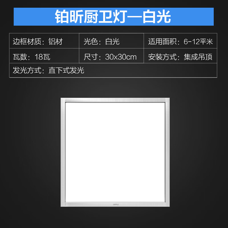 欧普(OPPLE)厨卫灯集成吊顶灯厨房灯吸顶灯卫生间高亮LED平板灯 300*300 18W价格:98.70元!