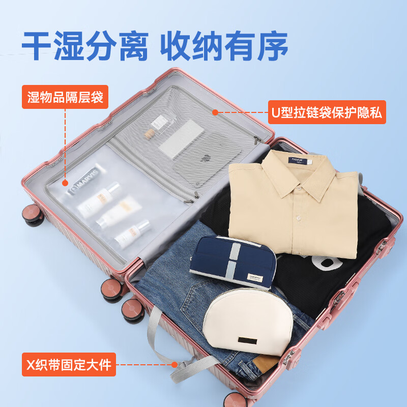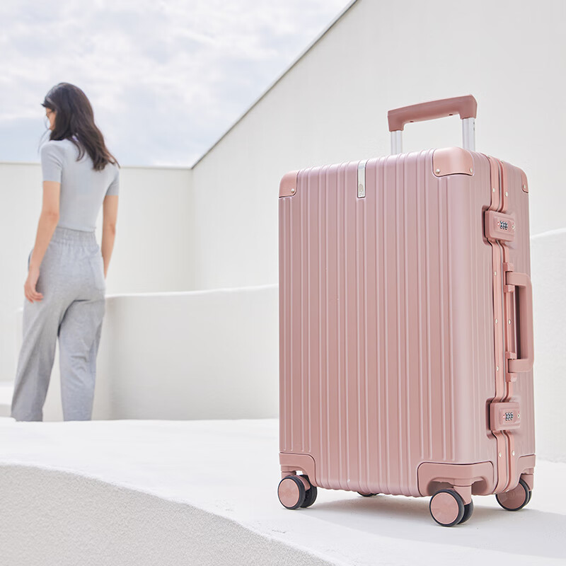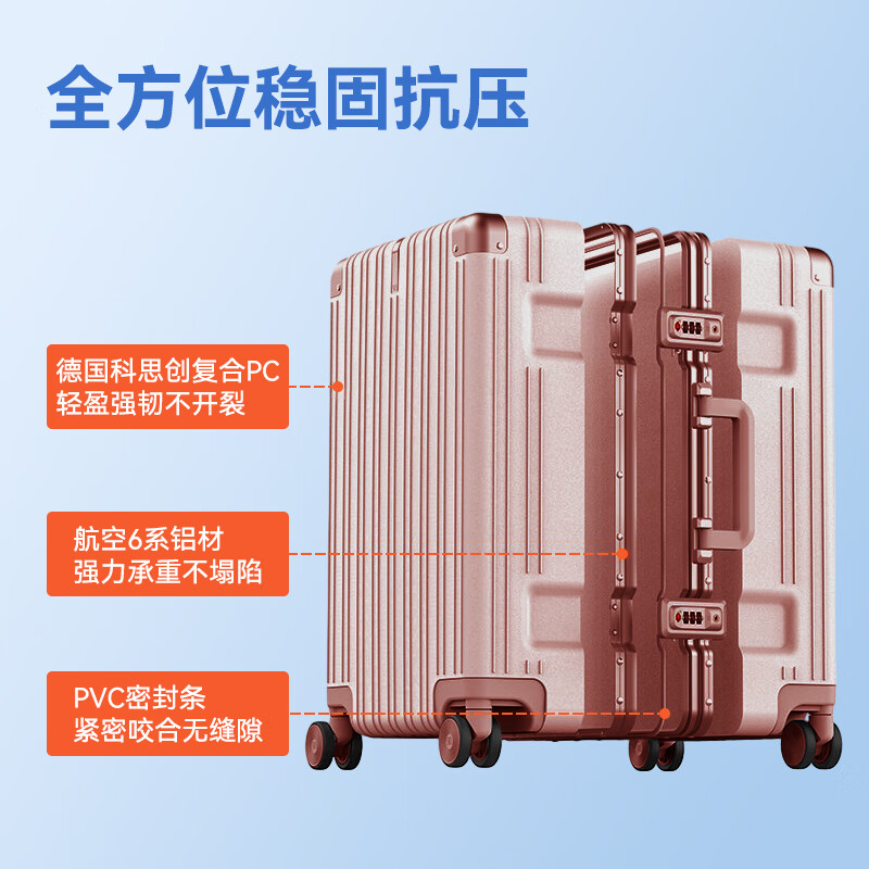 90分PC旅行箱轻质铝框行李箱防刮商旅两用拉杆箱26英寸大容量托运箱价格:679.00元!