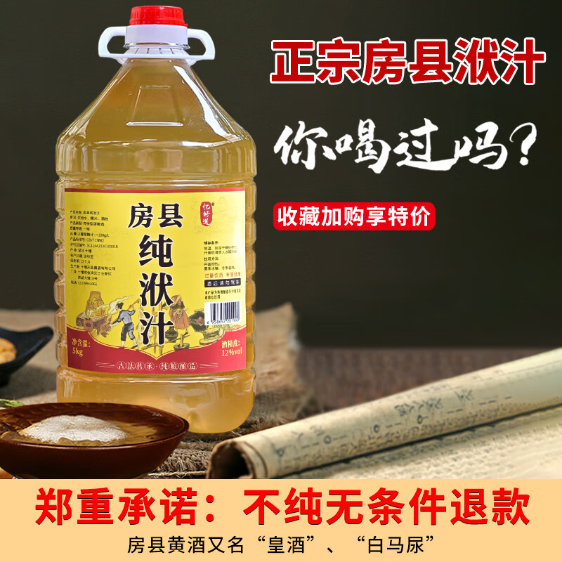 忆好道 正宗房县黄酒 纯洑汁 甜型伏汁酒 湖北特产 5kg桶装 10斤价格:115.80元!