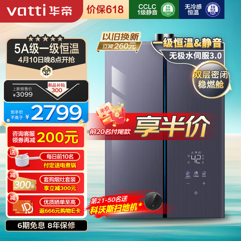 华帝(VATTI)16升燃气热水器天然气G5小飞碟系列 一级恒温一级静音 双层密闭稳燃舱无极变频水伺服i12572-16价格:2799.00元!
