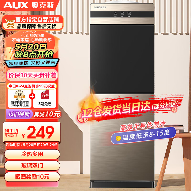 奥克斯(AUX)饮水机家用立式办公双开门柜式冷热饮水器 YLR-5-B价格:259.00元!