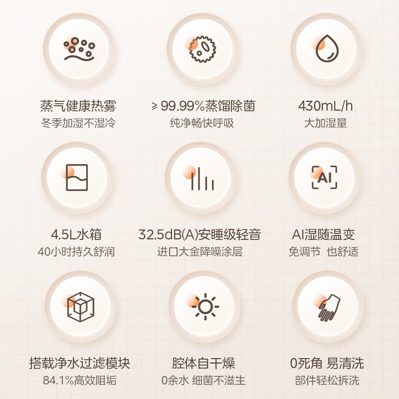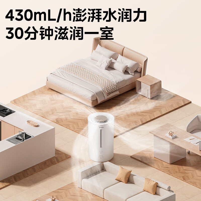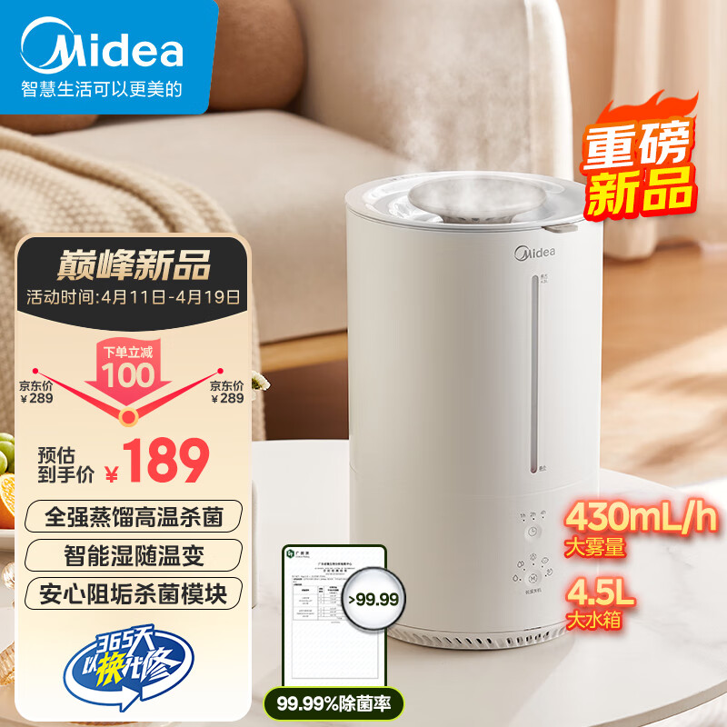 美的(Midea)热雾加湿器卧室婴儿空气加湿器办公室桌面低噪雾化器大容量空气加湿器 【热雾加湿】RS-3RWLS价格:189.00元!