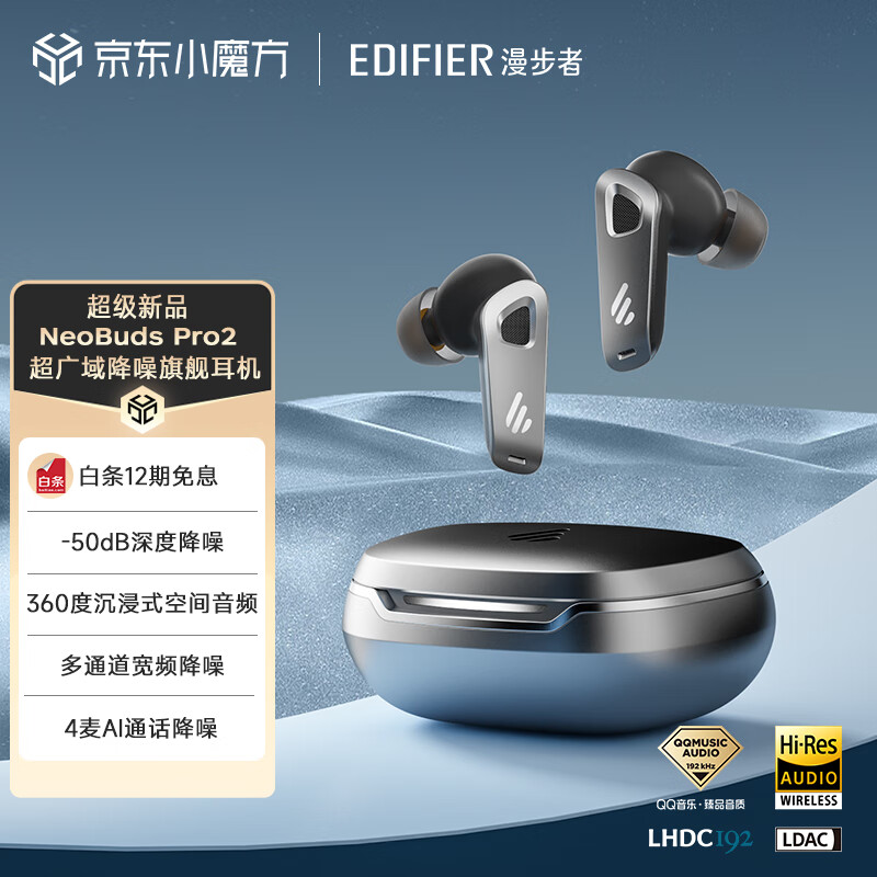 漫步者(EDIFIER)NeoBuds Pro2 超广域降噪蓝牙耳机 降噪运动耳机 适用苹果小米华为 银河灰价格:989.00元!
