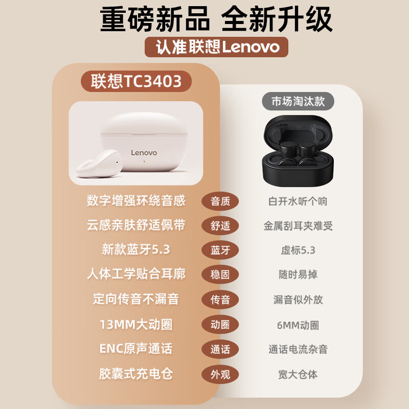 联想(lenovo)蓝牙耳机骨传导概念耳夹式无线开放不入耳运动跑步骑行通话降噪适用于苹果华为小米手机TC3403黑色价格:129.00元!