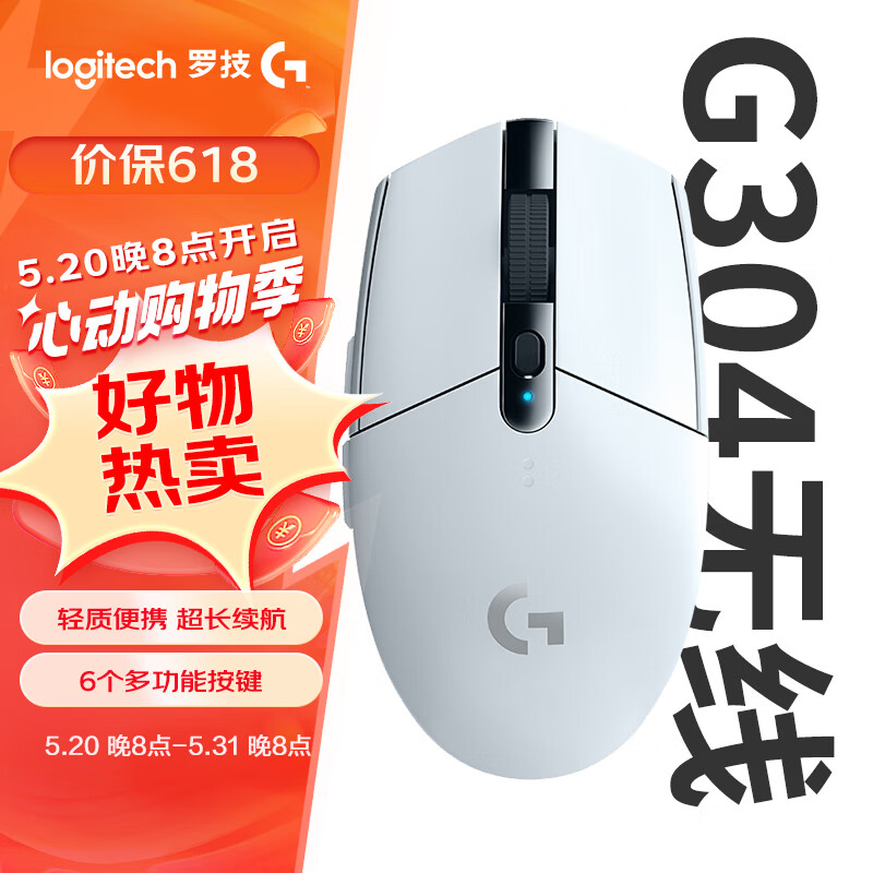 罗技(G)G304 LIGHTSPEED无线鼠标 游戏鼠标 轻质便携 绝地求生FPS鼠标英雄联盟LOL吃鸡 生日礼物 白色价格:209.00元!