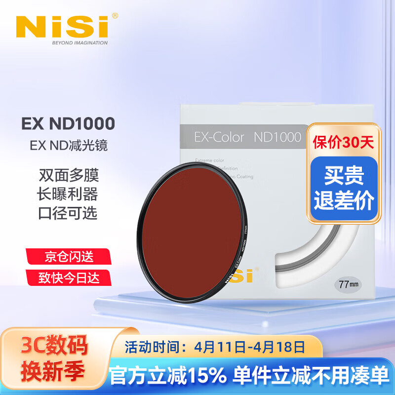 耐司(NiSi) ND1000减光镜ND64 ND8 中灰密度镜全系口径nd镜适用于佳能索尼风光摄影 EX ND8(减3档) 67mm价格:115.00元!