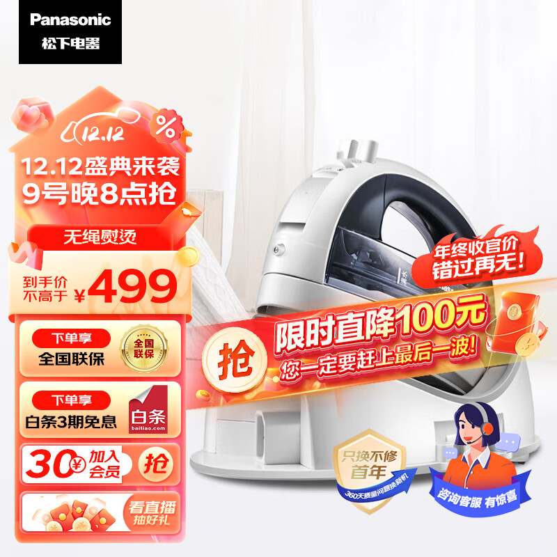 松下(Panasonic)电熨斗家用 手持无线挂烫机 电子恒温感应 自动断电 NI-WL65-H 白色价格:599.00元!