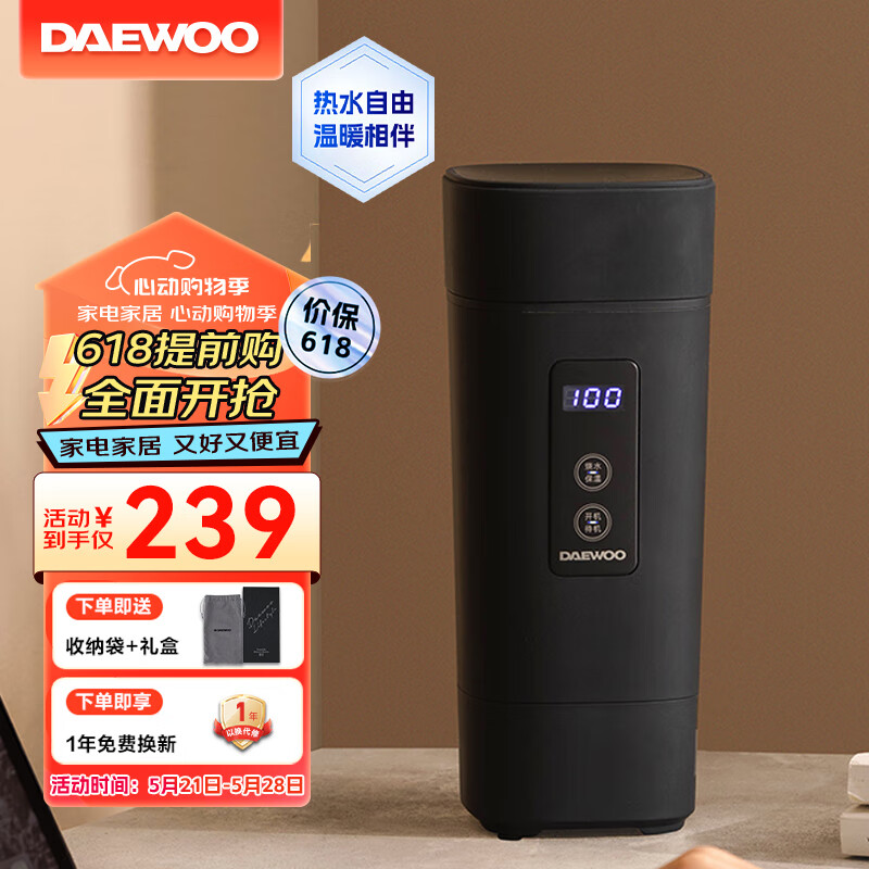 大宇(DAEWOO)电水壶 烧水壶便携式电热水杯家用旅行电热水壶 婴儿冲奶烧水杯办公室保温杯送礼D2升级款黑色价格:239.00元!