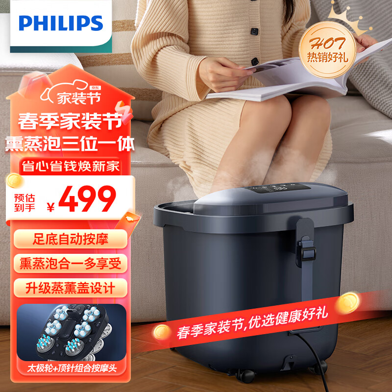 飞利浦(PHILIPS)泡脚桶恒温加热泡小腿洗脚盆 电动按摩揉捏加热足浴盆全自动泡脚盆养生礼品送长辈3205F价格:499.00元!