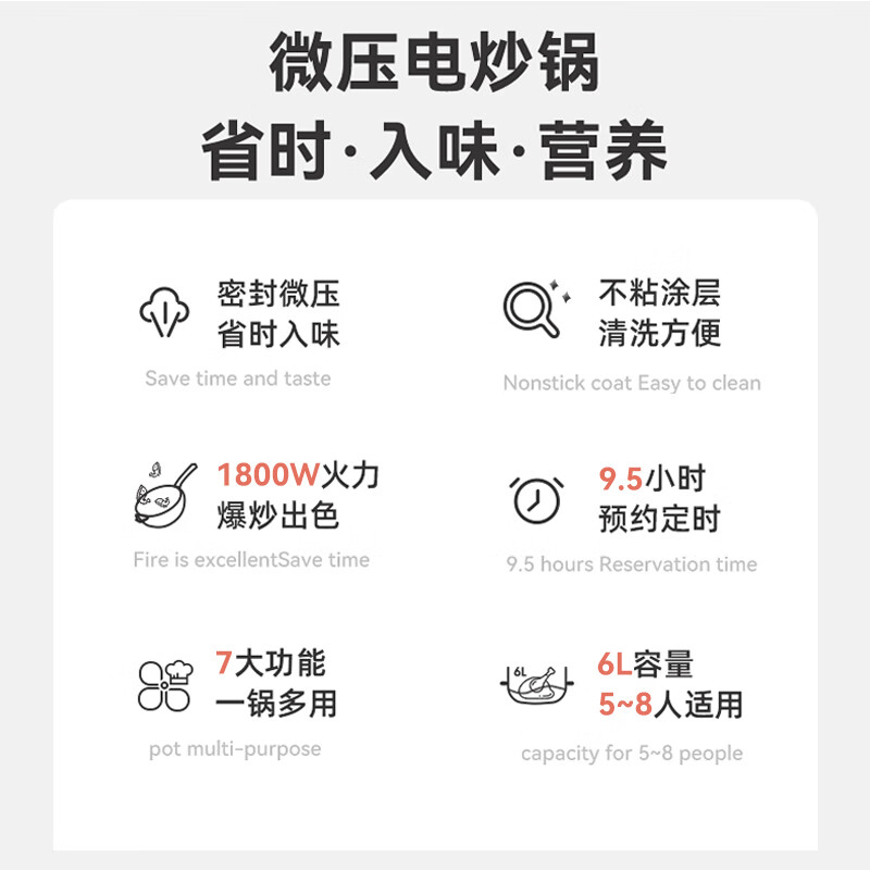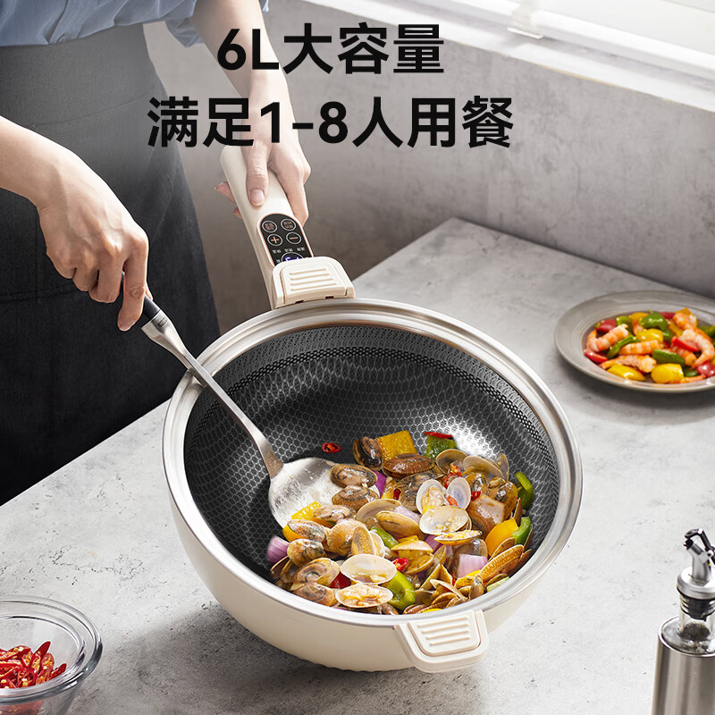 摩动摩动蜂窝晶纹304不锈钢内胆6L电炒锅炒菜一体式家用多功能不粘锅蒸煮煎爆炒微压电锅不锈钢蒸笼价格:309.00元!