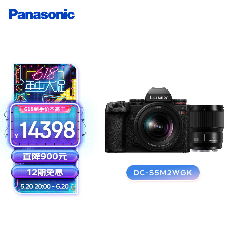 松下S5M2(20-60mm+50mm)(Panasonic)S5二代 全画幅微单相机 约2420万有效像素 新相位混合对焦价格:14398.00元!