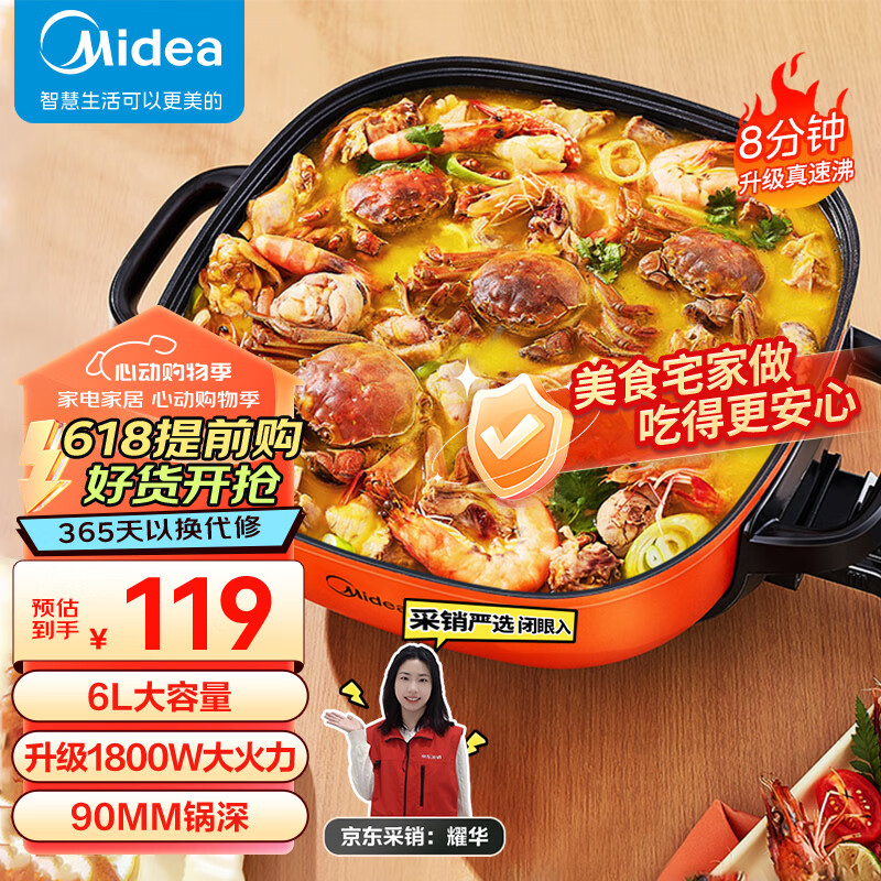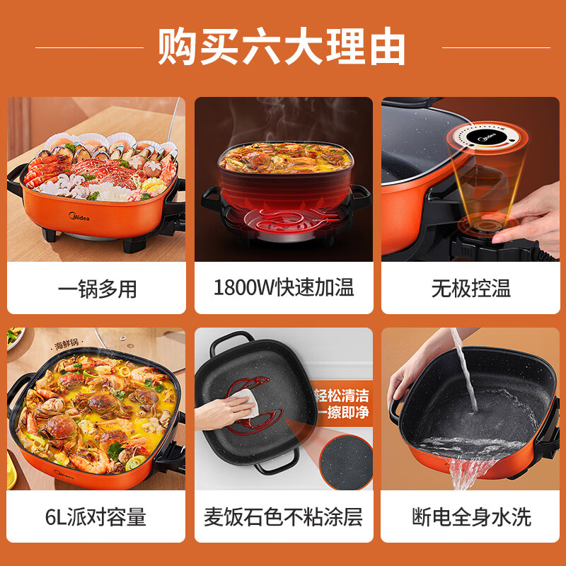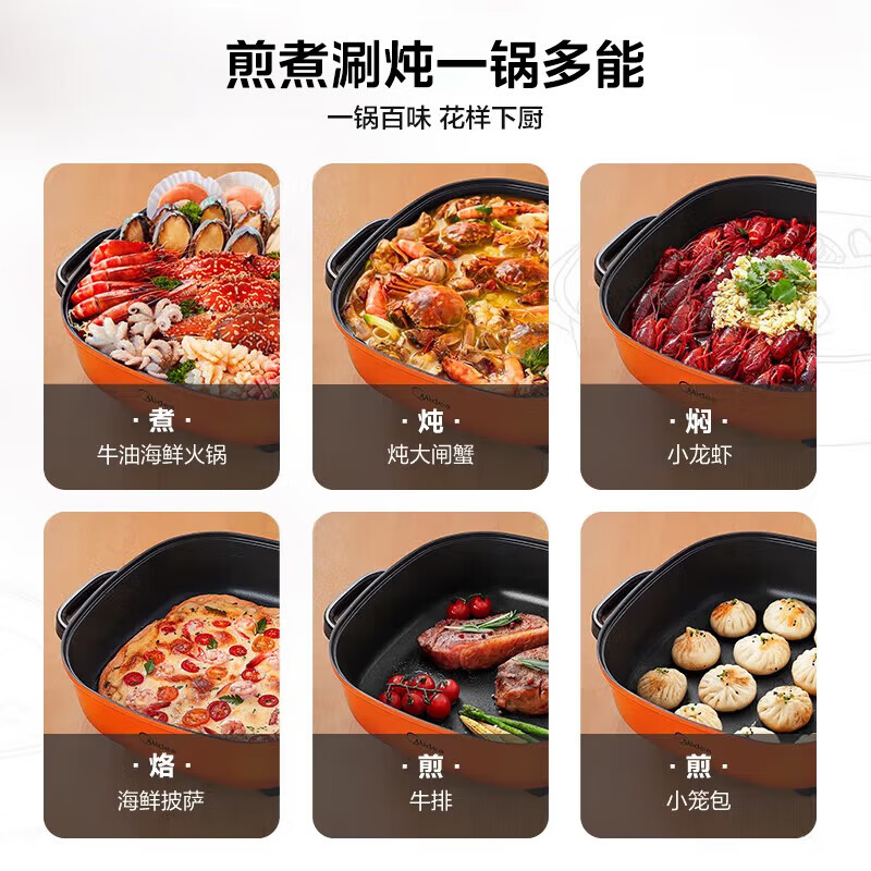 美的(Midea)电火锅 电煮锅 火锅专用锅 电锅一体锅 电炒锅 家用多功能料理烤肉电热锅 6L多用途锅 LHN30A价格:119.00元!