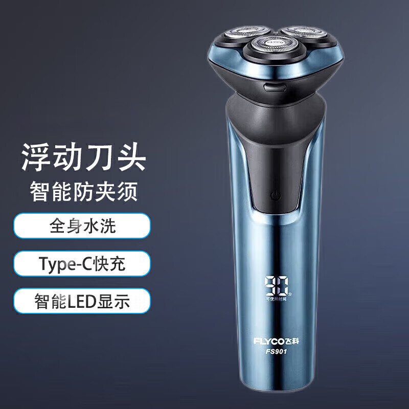 飞科(FLYCO)剃须刀电动刮胡刀 智能LED显示 全身水洗 1小时快充 FS901 蓝色价格:119.00元!