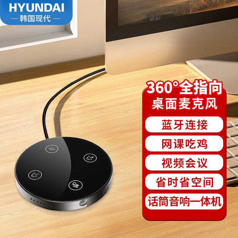 HYUNDAI Y12B-B 视频会议全向麦克风USB电脑笔记本音响带麦网课录音蓝牙话筒游戏桌面网络扬声器一体机价格:139.00元!