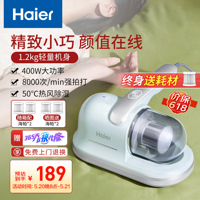 海尔(Haier)除螨仪家用床上手持非无线双拍打HZ-C602 紫外线杀菌除螨 太空舱旋风吸尘价格:189.00元!