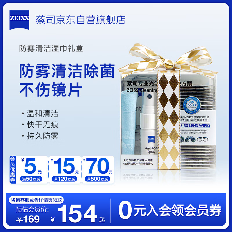 zeiss蔡司 镜片镜头专业光学清洁湿巾加防雾套装 近视眼镜 护目镜 游泳镜 防雾礼盒套装 节日礼物价格:169.00元!