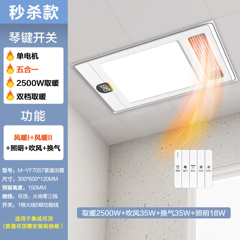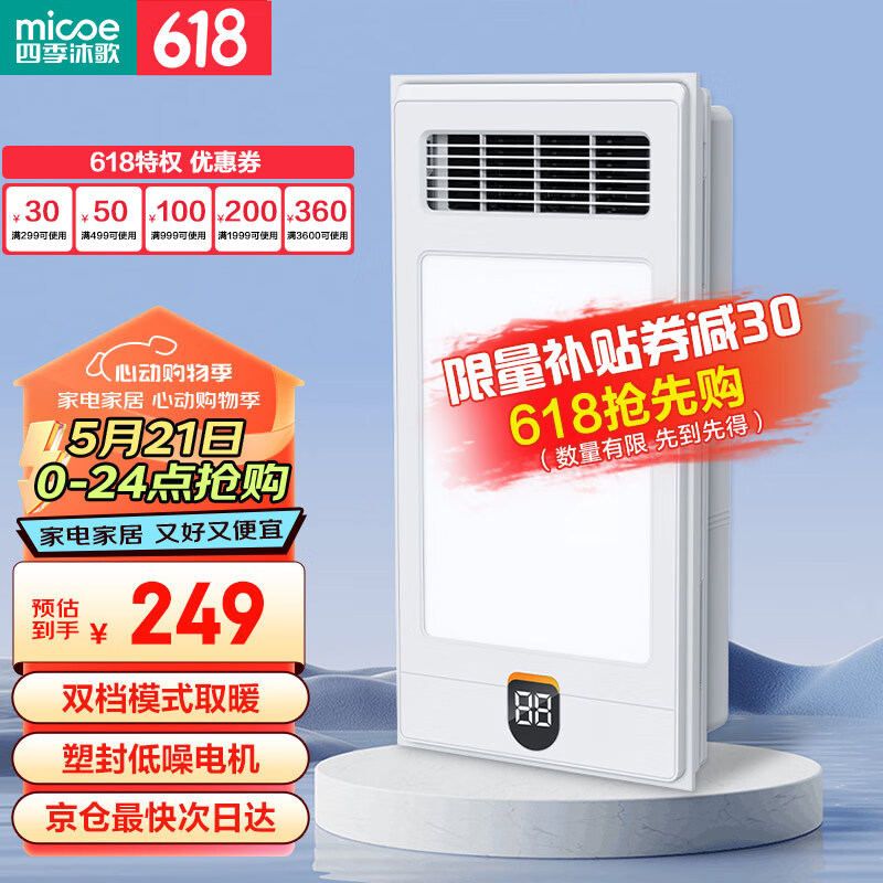 四季沐歌(MICOE)浴霸风暖浴霸暖风照明排气一体集成吊顶 暖风机浴室卫生间灯价格:249.00元!