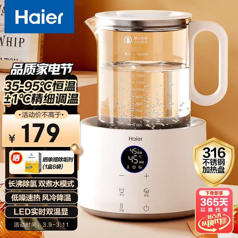 海尔(Haier) 恒温烧水壶1.5L 多功能电水壶煮茶恒温水壶冲泡奶粉电热水壶 HBM-H207价格:169.00元!