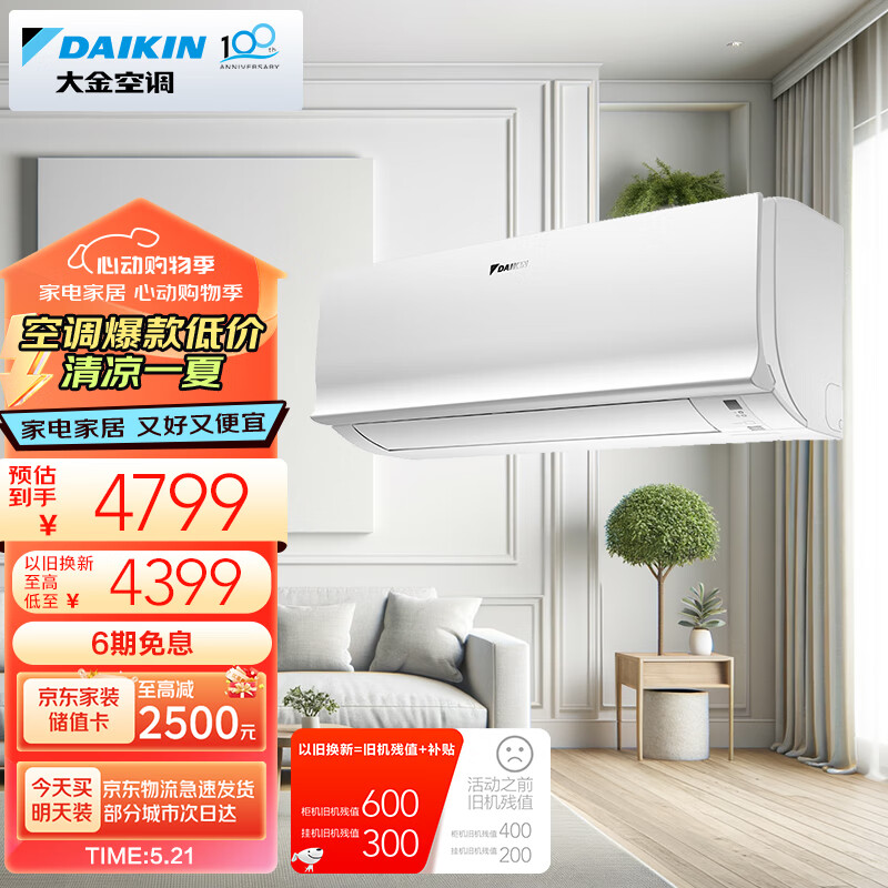 大金空调 10-17㎡适用 新二级能效 大1匹 变频 冷暖 家用 壁挂式 以旧换新 ATXS226WC-W价格:4799.00元!
